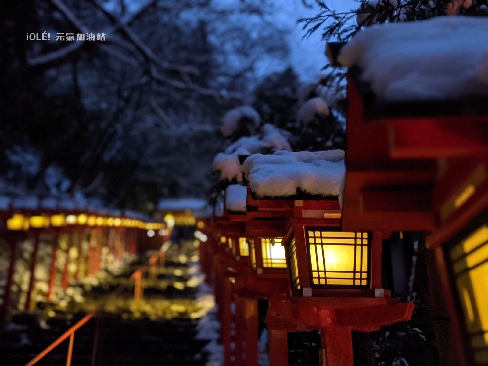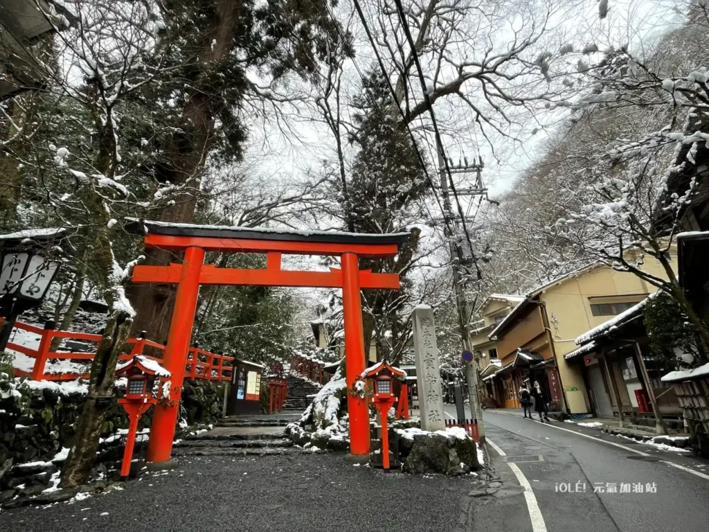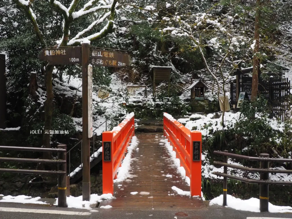 對了,貴船神社在山區,冬天會冷喔,我去的那天是陰天,溫度都在0~2度,大家要注意保暖,特別是入夜以後。原本看天氣預報以為我去的那天會是晴天,結果出發前一天下了雪,人品爆發,意外解鎖了雪貴船,有白雪妝點的神社太美了 !