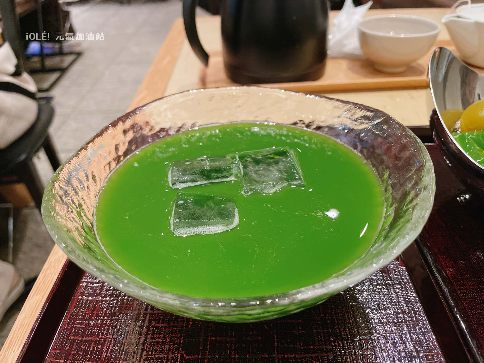 點了一份很豐盛的抹茶甜品、一碗冰抹茶,總共2050 yen,覺得比想像中便宜,餐前還有招待熱茶。日本餐廳都還有在用隔板,覺得他們比台灣還認真防疫 XD