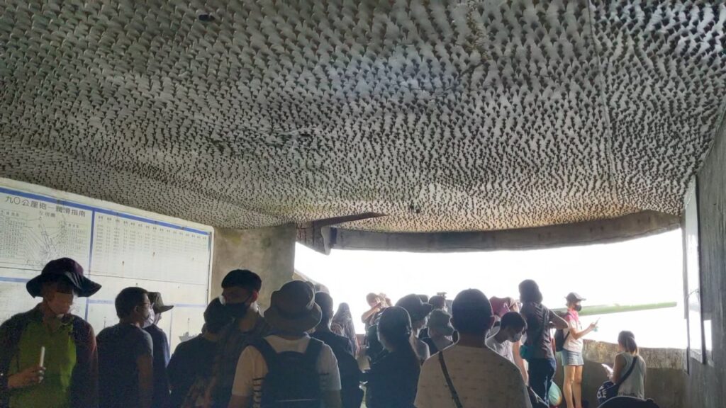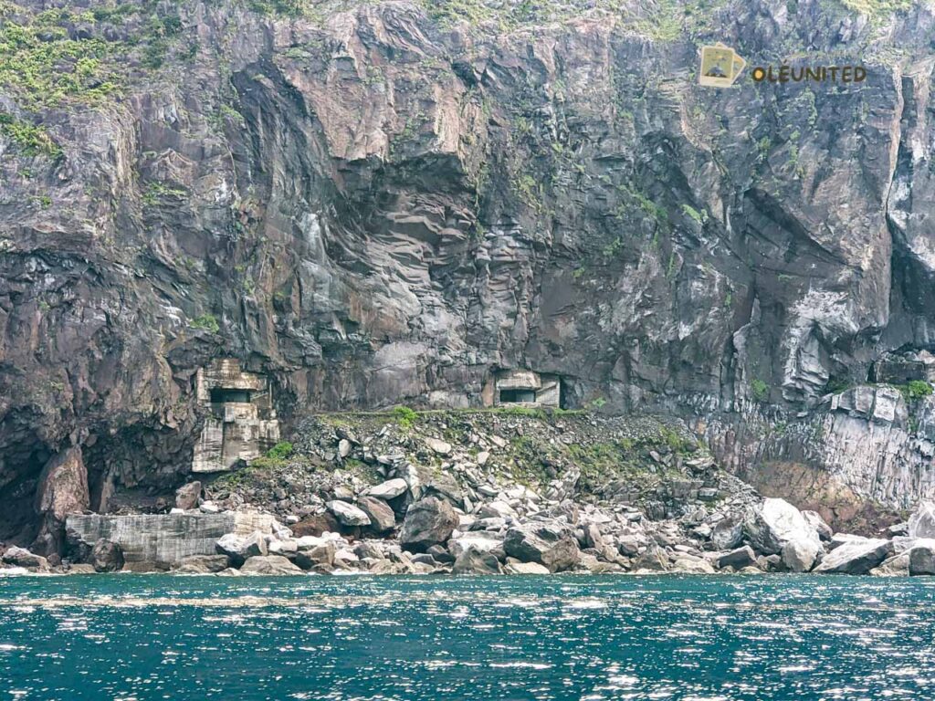龜山島在1977年以前是有居民的,後來因中美斷交,龜山島變成軍事基地,島上的居民全數遷村到宜蘭大溪,岩壁上可以看到坑道的洞口。