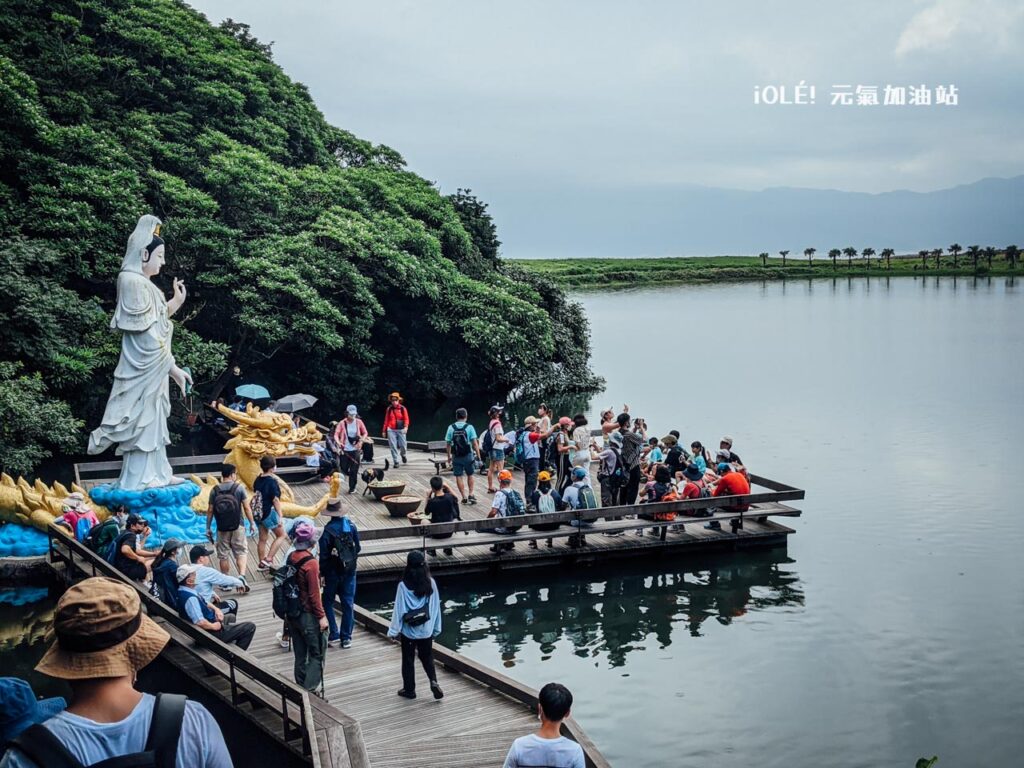 下山稍作休息後,繼續今日的登島參觀行程,導遊帶著我們走龜尾湖一圈,並為我們介紹沿途景點。